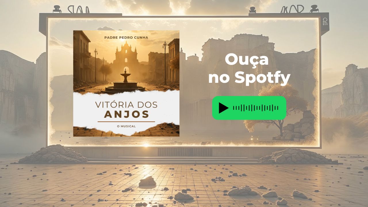 Agora você pode ouvir no Spotfy as músicas compostas pelo Padre Pedro Cunha. E o primeiro lançamento é o álbum Vitória dos Anjos – O Musical, que conta a história de jovens moradores de uma vila devastada pela guerra, suas angústias, desafios e a luta por manter viva a esperança por dias melhores.